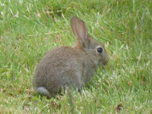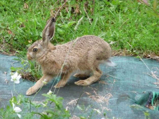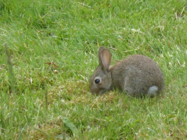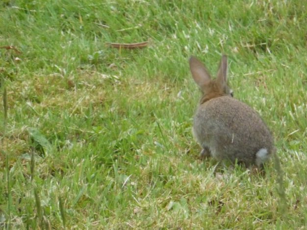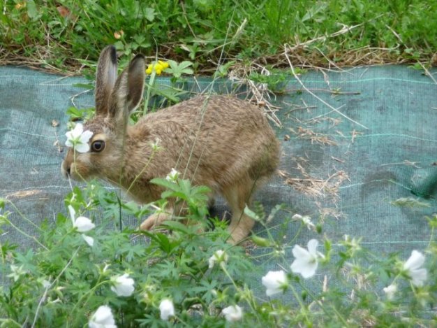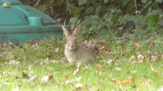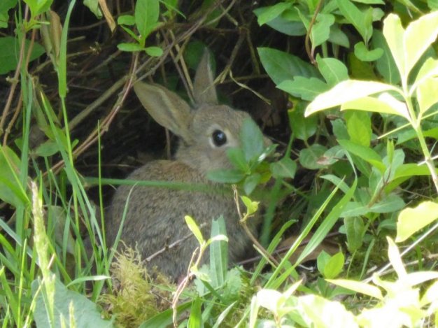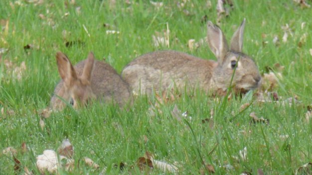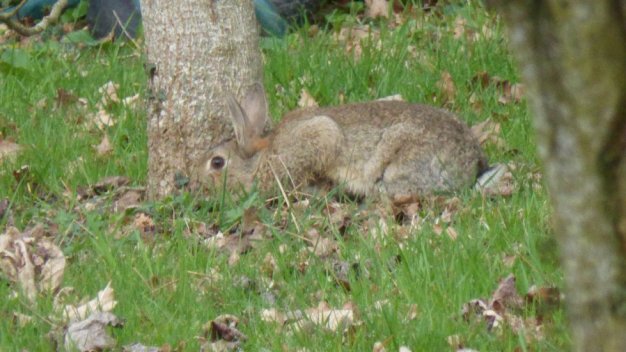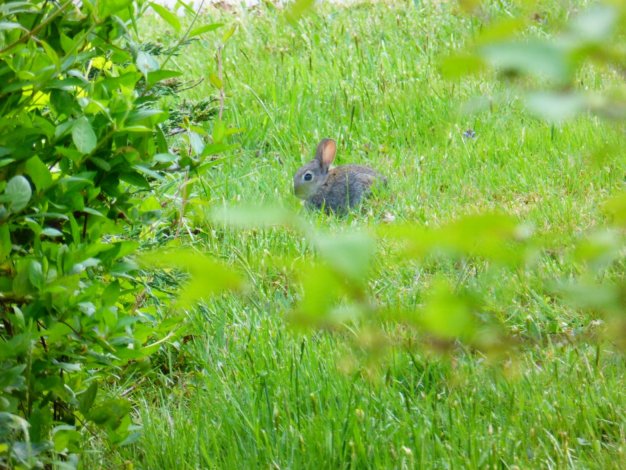 Un voisin a laché il y a quelques années des lapins dans son jardin. Depuis, ils sont arrivés chez nous et ont fait plein de petits... Les bébés sont adorables et je peux passer des heures à les regarder ! Mais la prolifération fait quand même beaucoup de dégâts dans le potager. Sans compter tous les trous qu'ils font partout, et leur propension à déterrer tout ce que je viens de planter ;-)