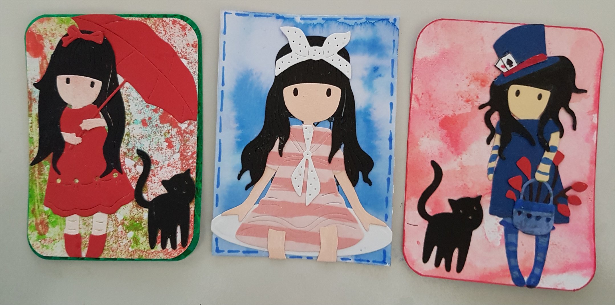 Une petite série de 3 ATC Gorjuss réalisée avec les dies Gorjuss 3D que je viens de recevoir.