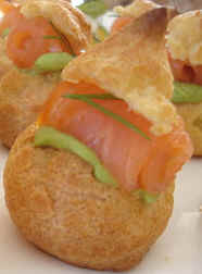 Sur chaque triangle ainsi formé déposer une lanière de saumon fumé , puis