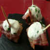 2/ Enroulez chaque pruneau dans 1 tranche de viande des grisons, maintenez le tout par un cure-dent.