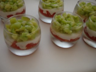 Verrine avocat, pamplemousse et écrevisses à la gelée d'agrumes