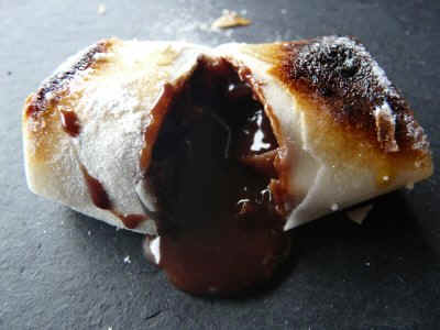 Dans une casserole, versez le lait, portez le à ébullition. Hors du feu, versez le chocolat coupé en petits morceaux, le Nutella. Remuez vivement pour obtenir une pâte lisse. Laissez tiédir. Versez ce mélange dans un moule à glaçon ou dans des petits empreintes. Entreposez le au congélateur pour faire durcir votre préparation 5 heures minimum. (souvent je prépare des "glaçons de chocolat " sans savoir exactement quand je les utiliserai car ils peuvent rester au congélateur plusieurs jours). Découpez les feuilles de filo en bandes assez larges, placer votre glaçon au centre, repliez la partie de gauche et de droite et ensuite enveloppez la comme un paquet cadeau.