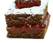 Fond de meringue émiettée - appareil parfait de chocolat - crème fouettée nature ou aromatisée - une cerise à l'eau de vie. Outre le contraste meringue/chocolat vu précédemment on a aussi une opposition interessante entre la légèreté de la crème fouettée et l'onctuosité assez compacte du chocolat. La crème peut éventuellement être parfumée au kirsh