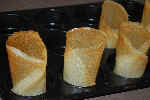 Prendre les feuilles de brick et les badigeonner de beurre fondu. Les couper en 4 pour avoir 4 triangles, les mettre deux par deux et les plisser, attacher avec une épingle pour tenir les plis (ne pas oublier de les enlever) couper le morceau qui dépasse en laissant un bout pour l'entrer dans la mousse et les mettre au four pendant 5 à 6 minutes, jusqu'à coloration. (à 180°)
