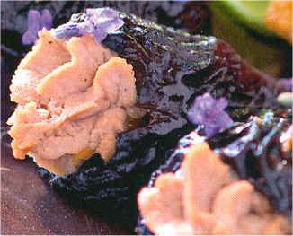Pour finir ... On peut parfumer la purée d'avocats avec quelques gouttes de pineau (ou autre vin cuit si on n'est pas charentais !), cela s'accorde parfaitement bien. On peut piquer un brin de ciboulette dessus pour décorer.