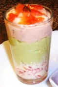 5/ Répartir la purée d'avocat dans les 4 verres, tasser légèrement le tout puis finir avec la crème à la ciboulette.