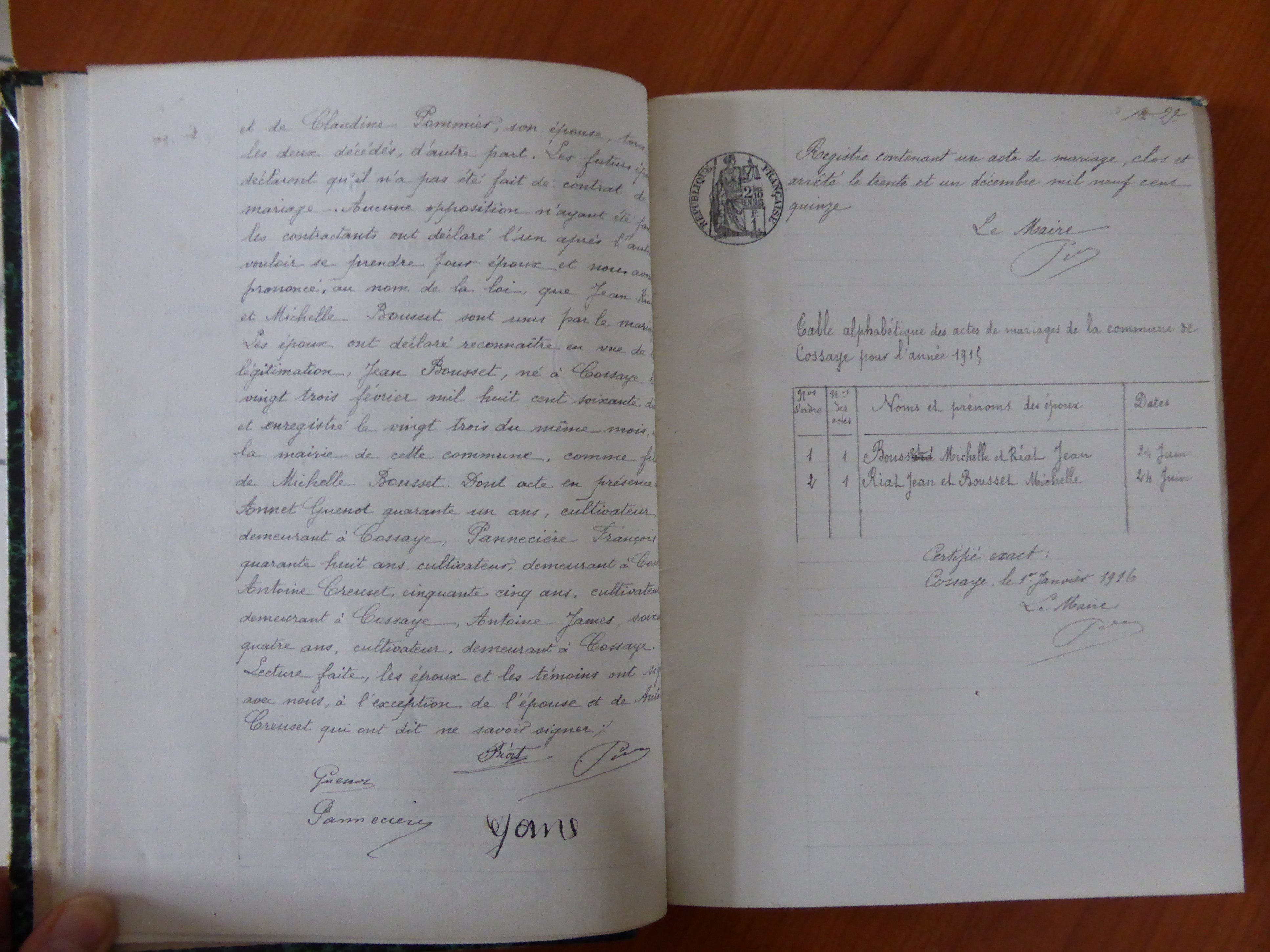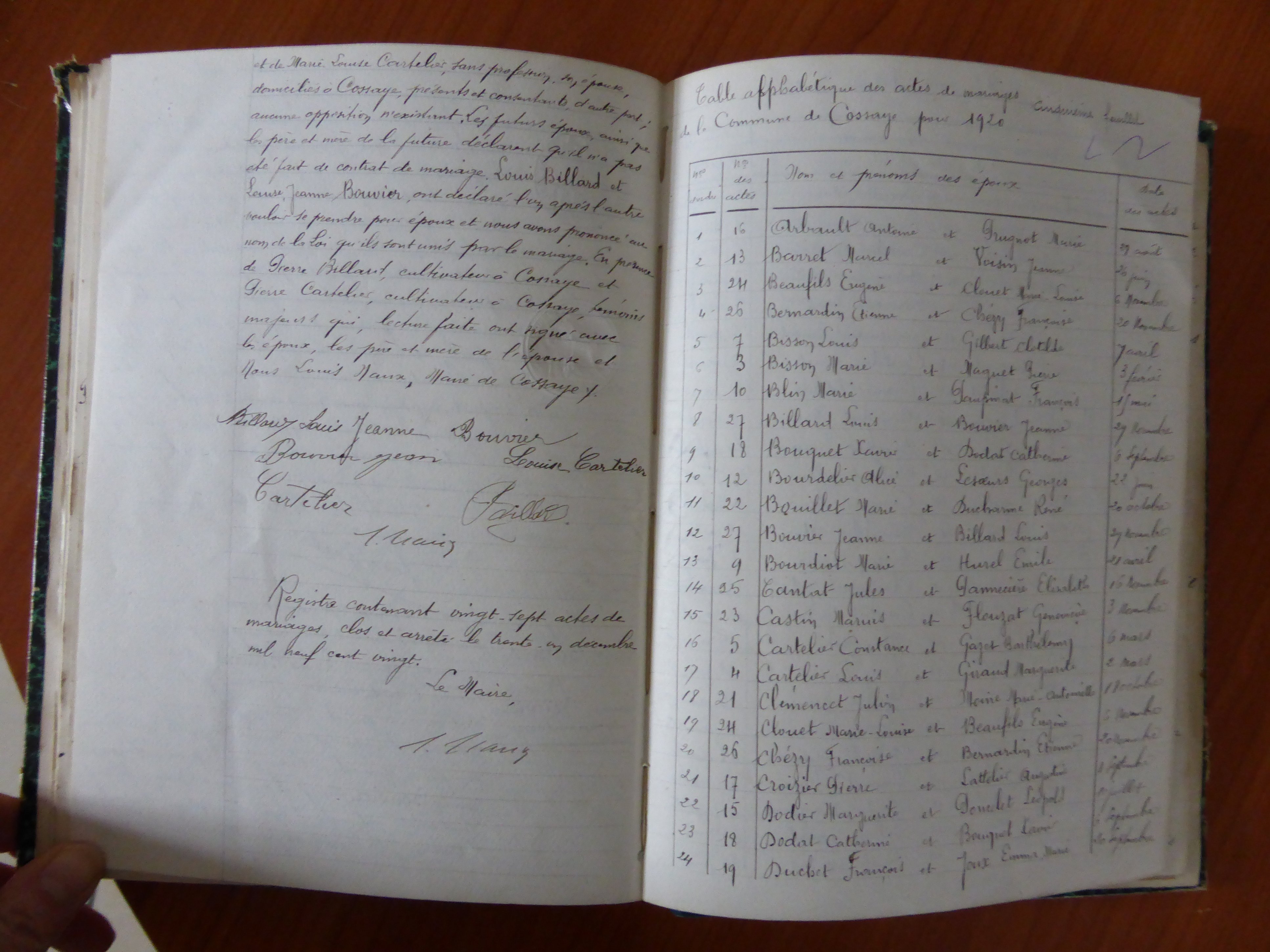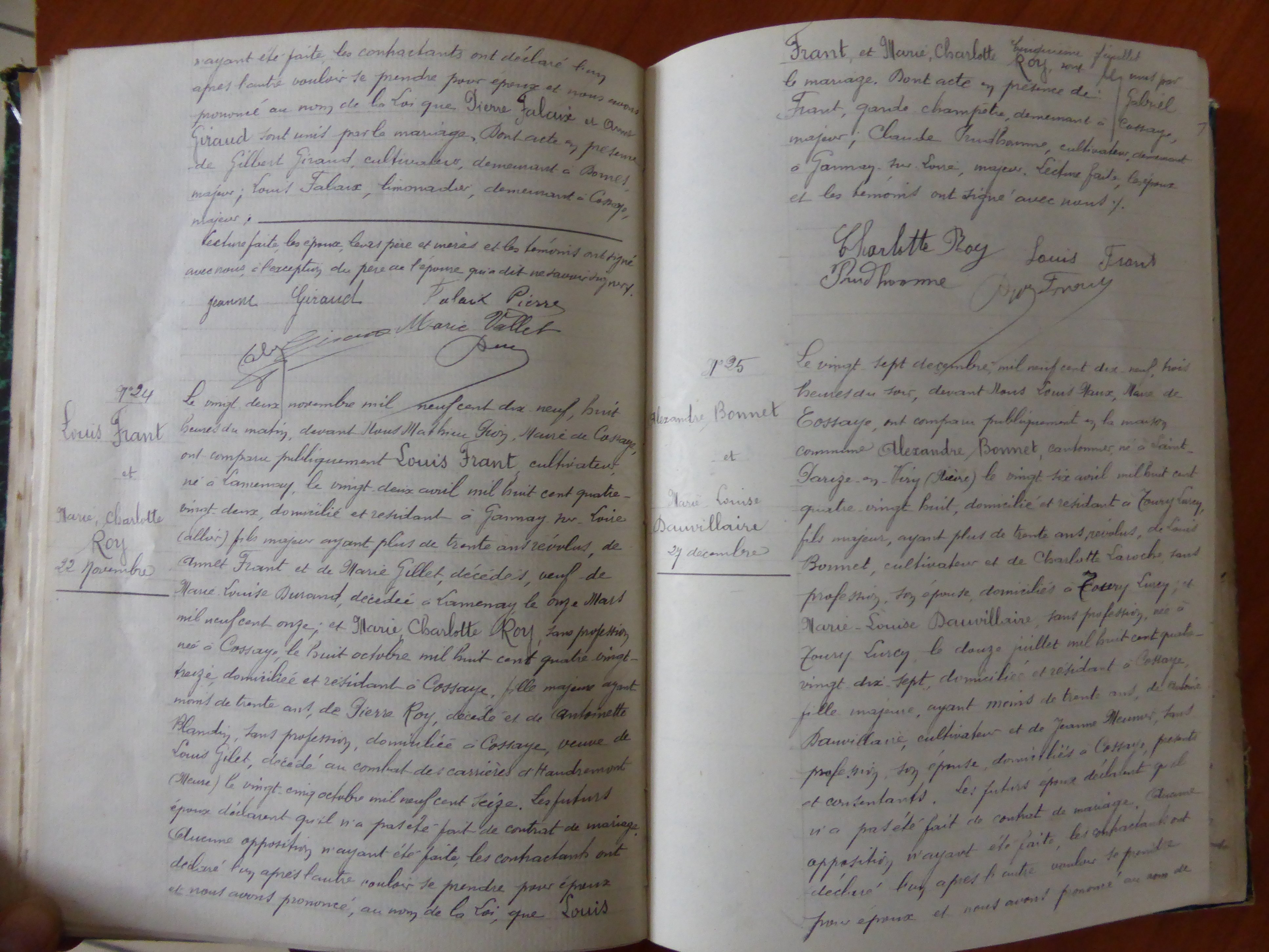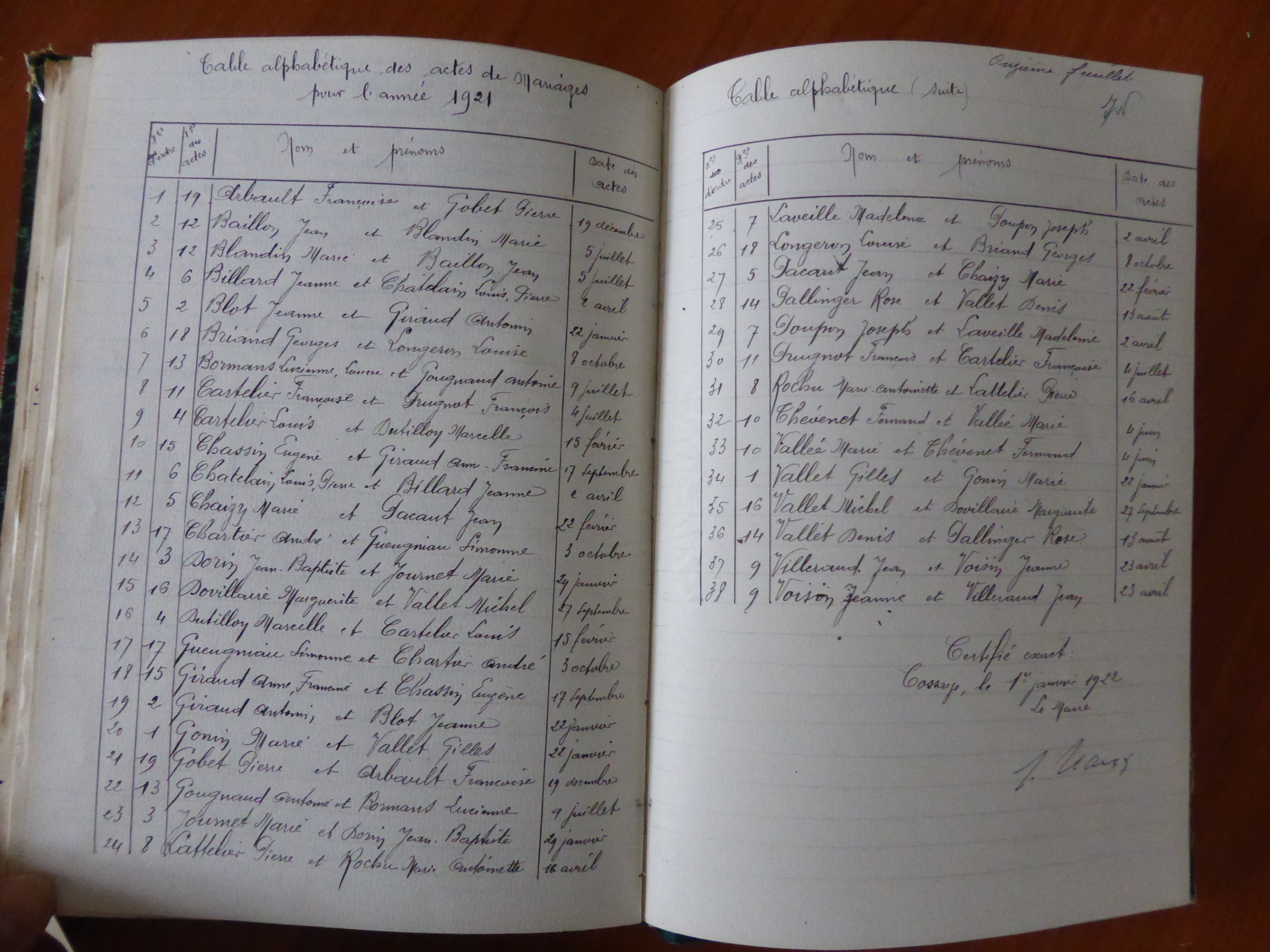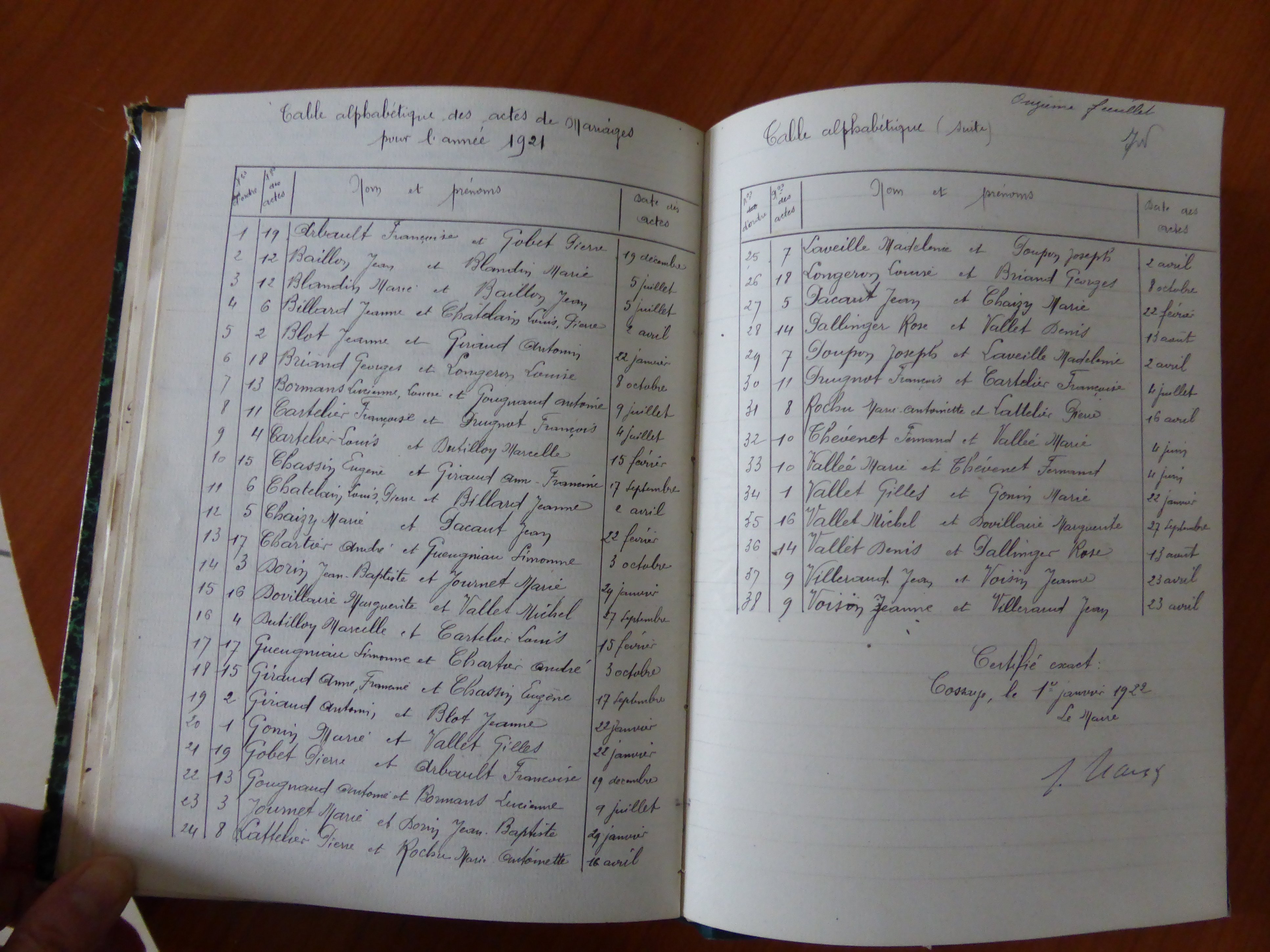 Photos des actes COSSAYE