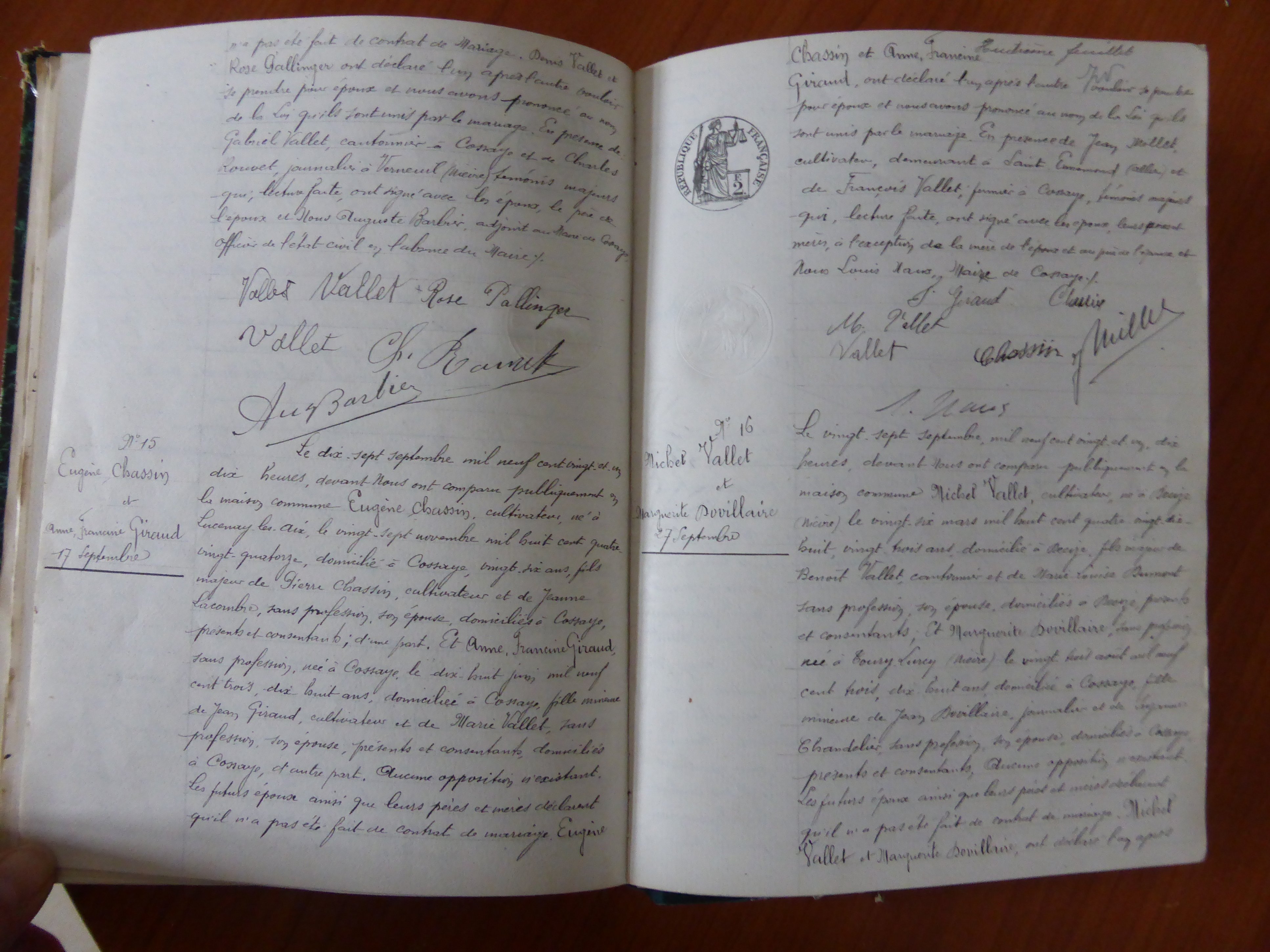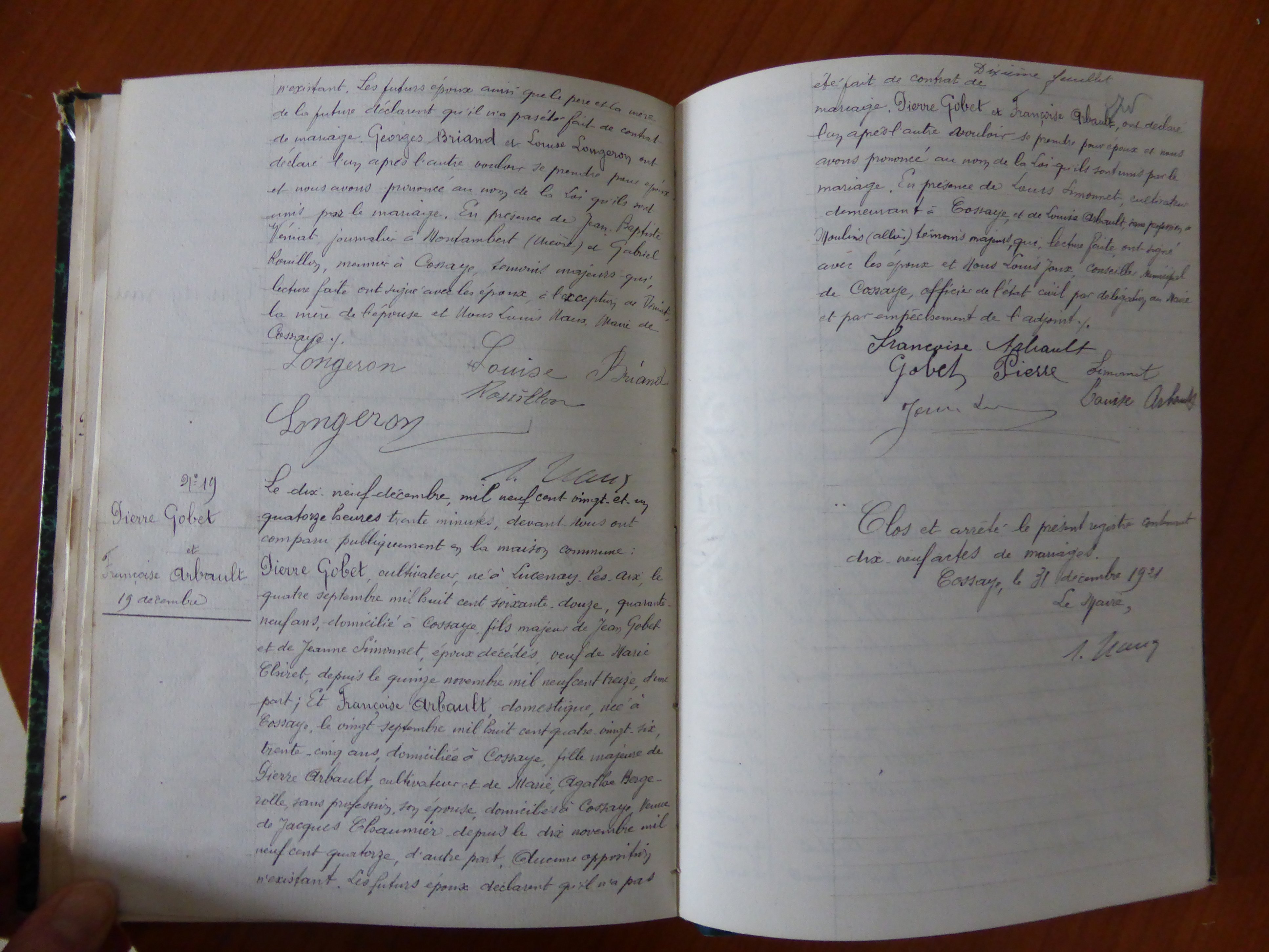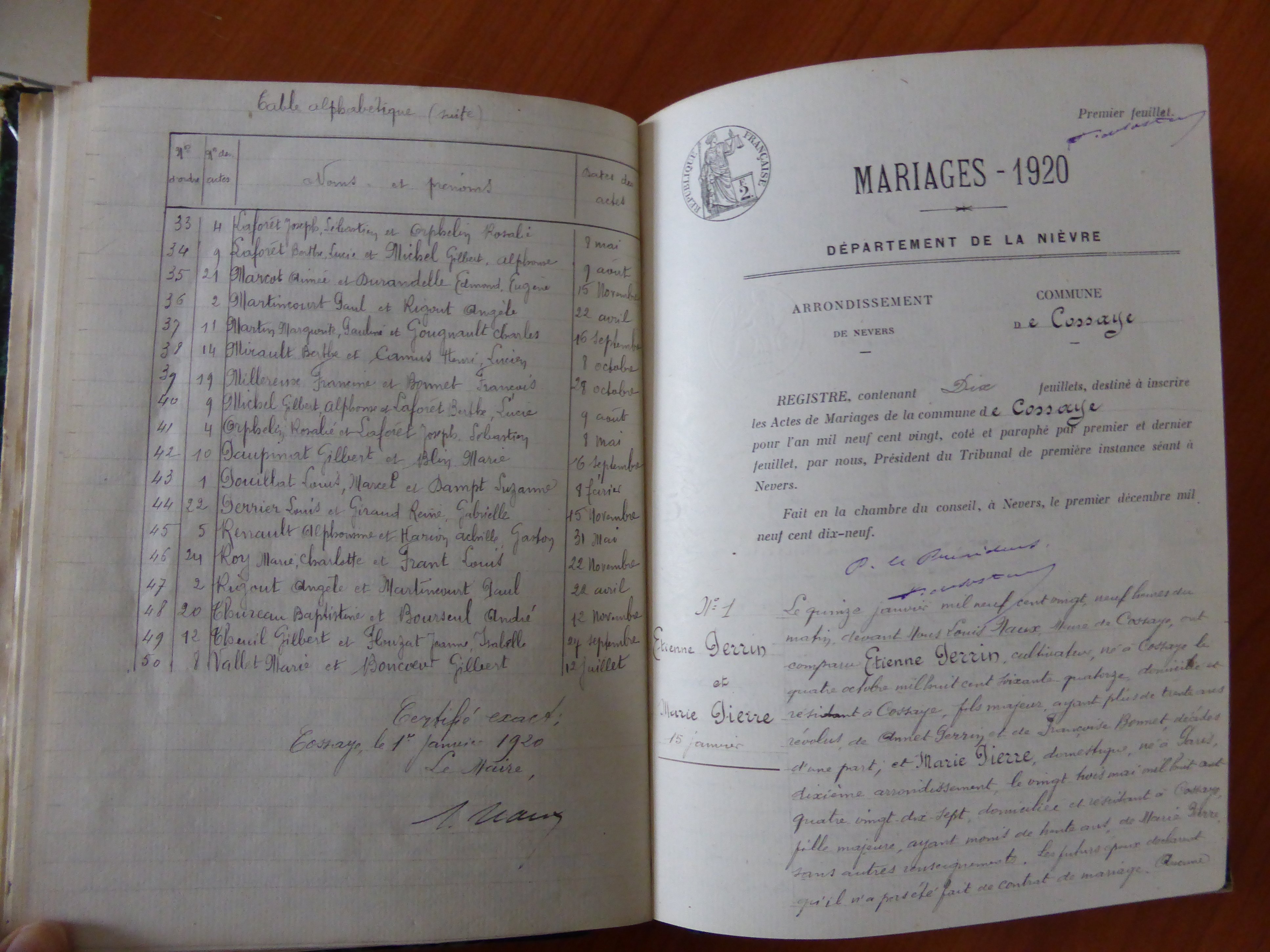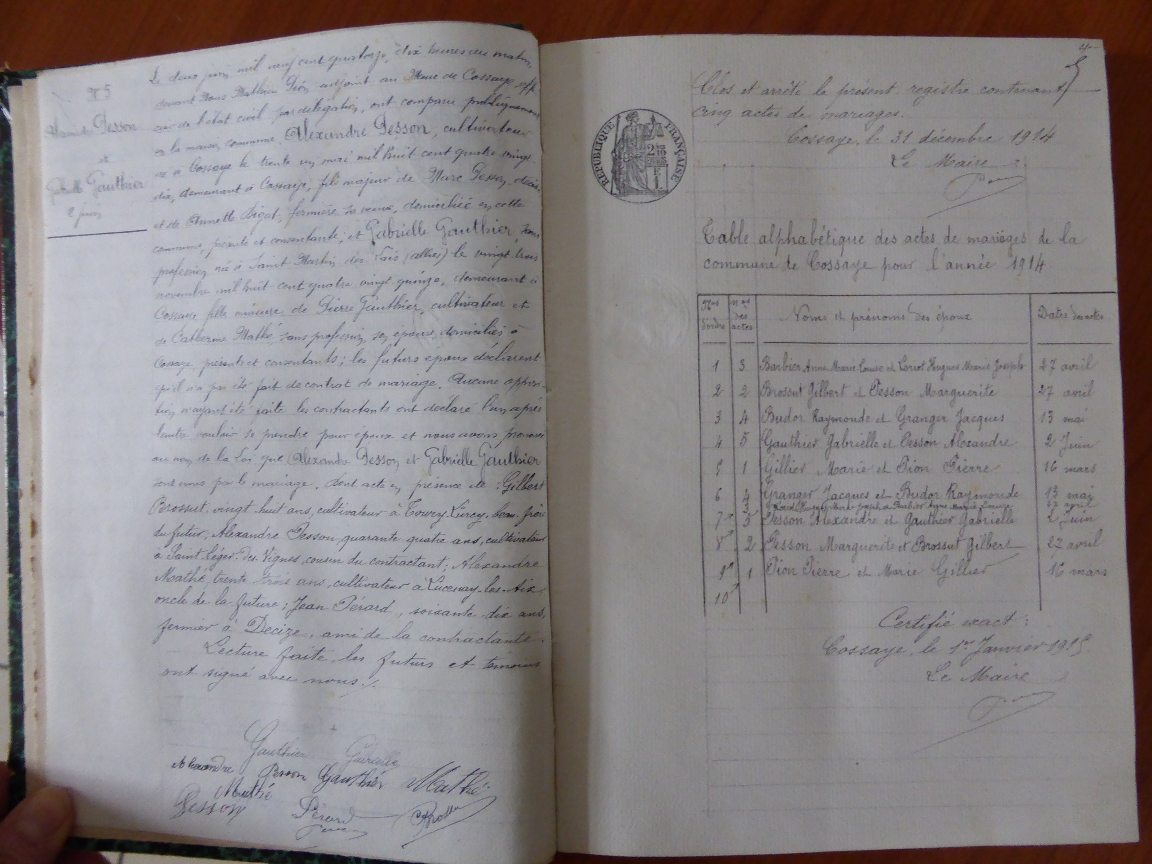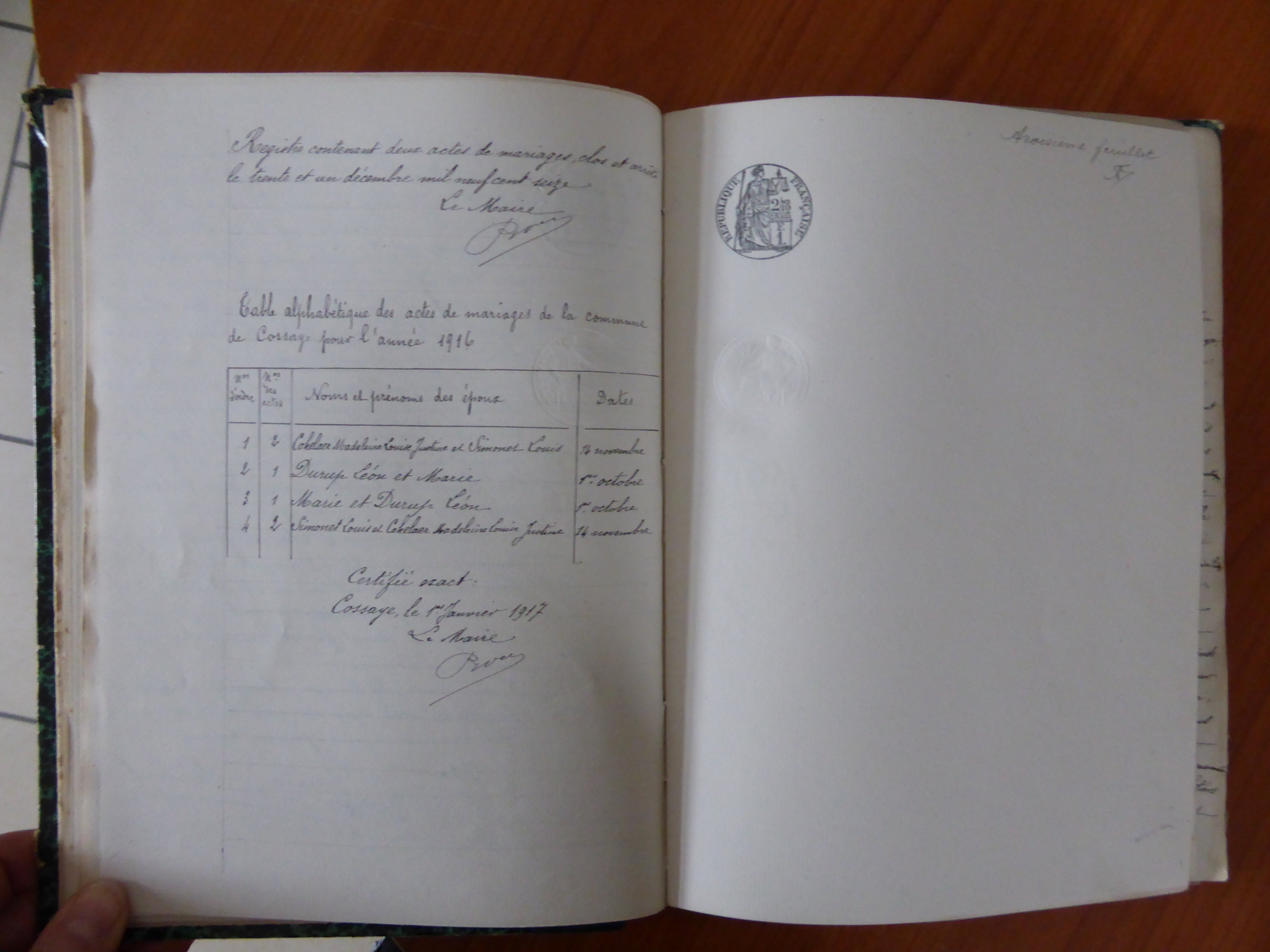 Photos des actes COSSAYE