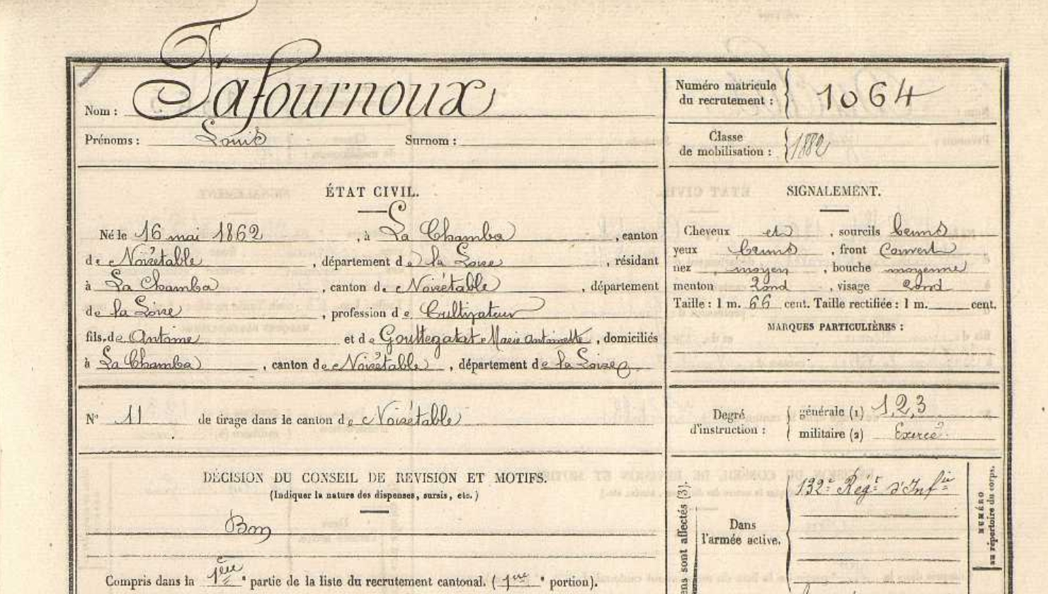 Sélectionnez la classe du soldat recherché : date de naissance + 20 ans