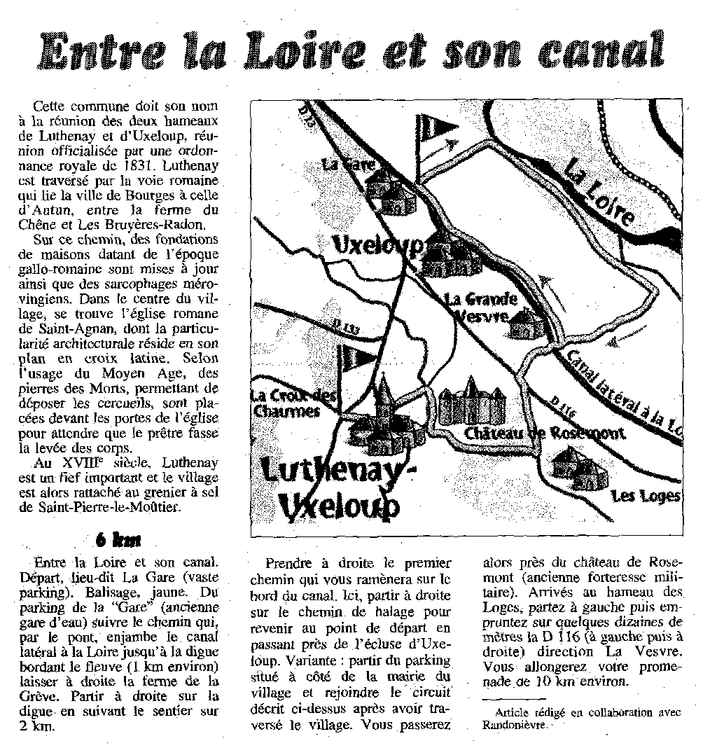 Un sentier de randonnée va s'ouvrir sur la commune. Il va de la Gare, la Grève, la Levée de la Loire, la grande Vèvre à l'Ecluse d'Uxeloup.