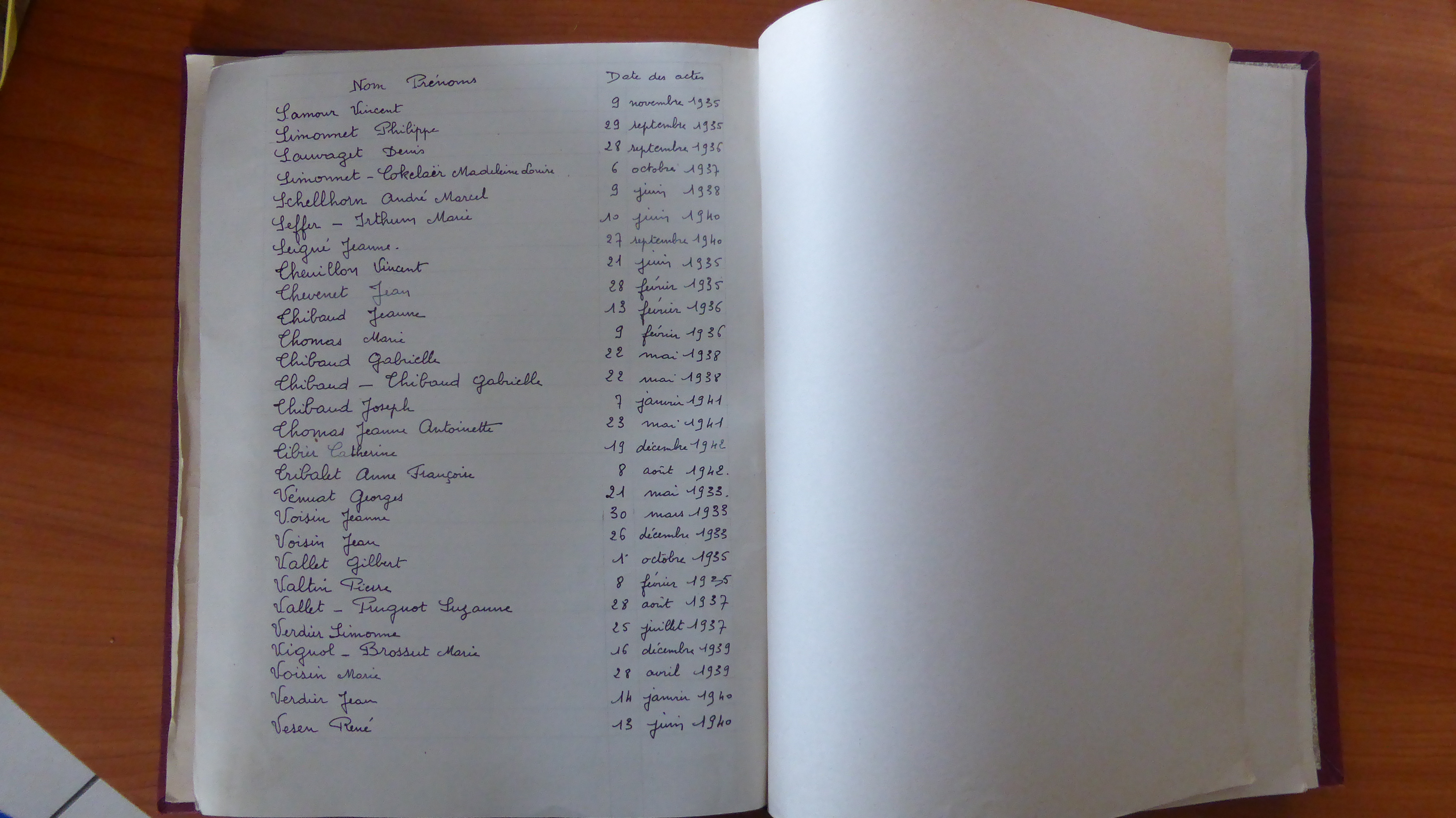 Photos tables décennales de COSSAYE