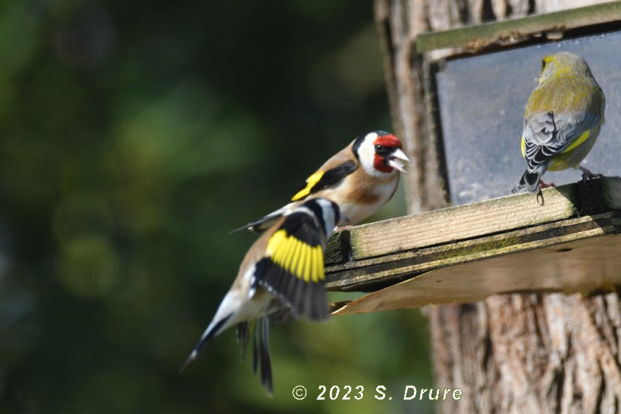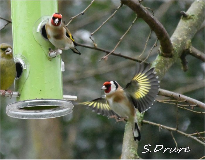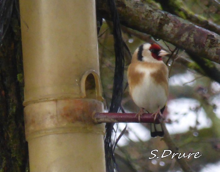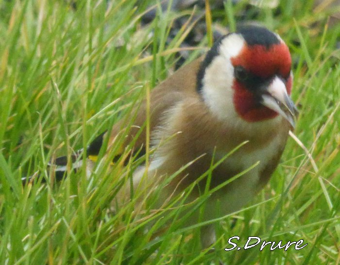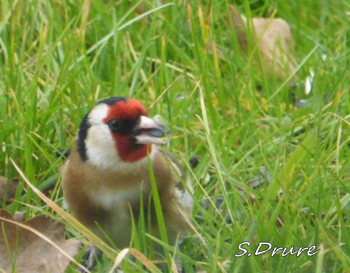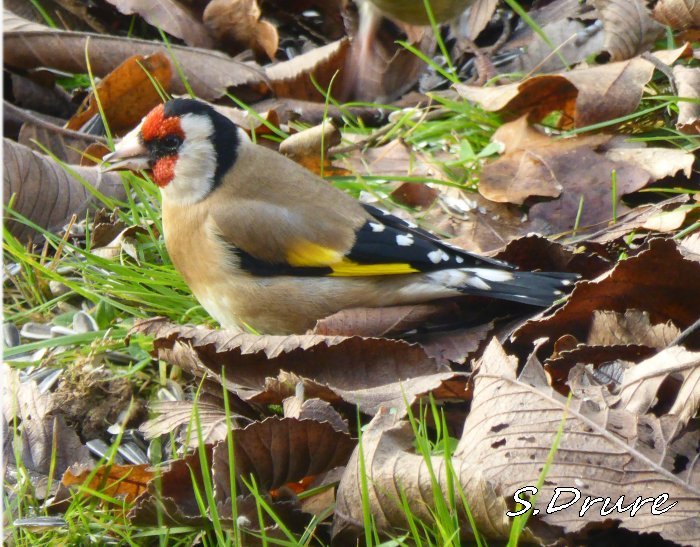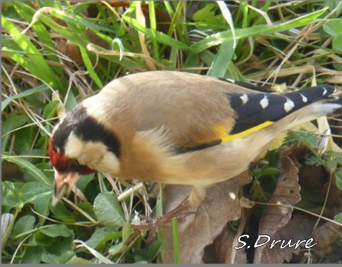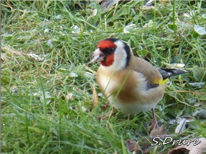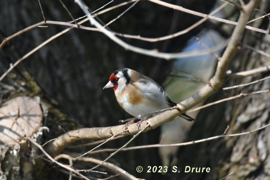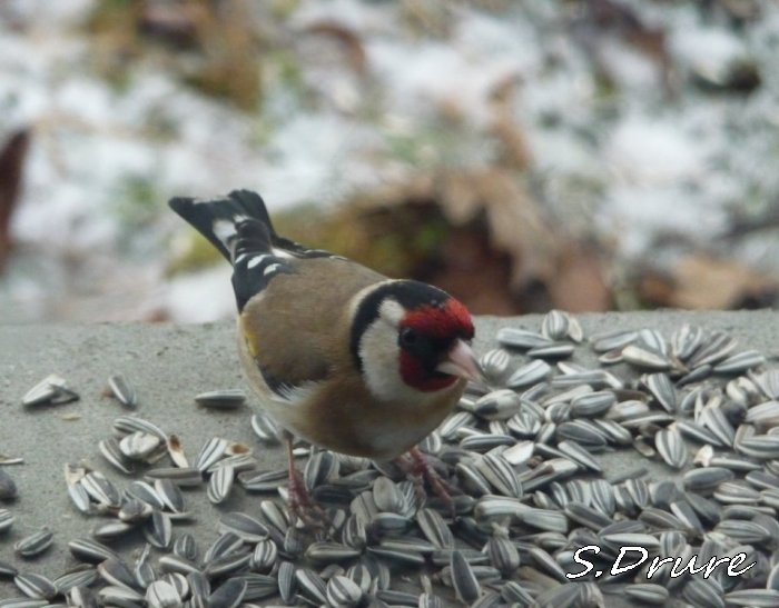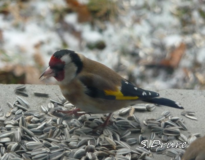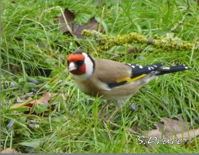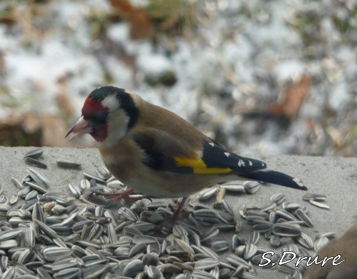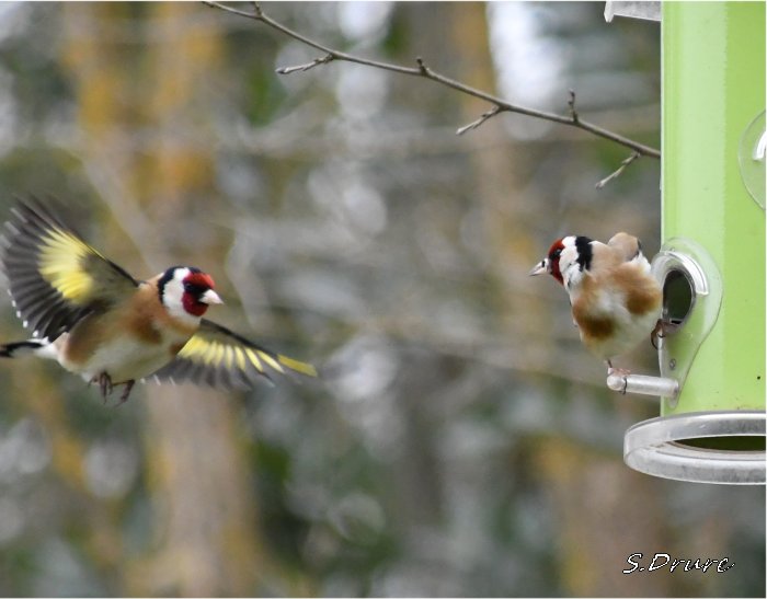 On reconnait facilement le chardonneret à son plumage rouge, noir, blanc et jaune.