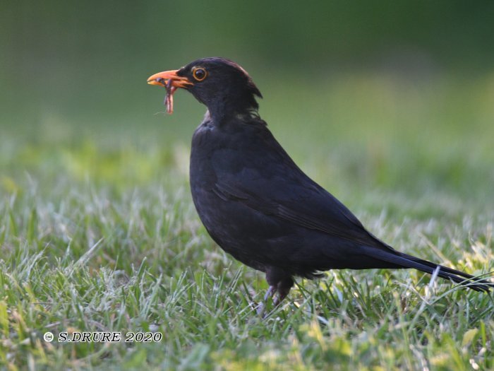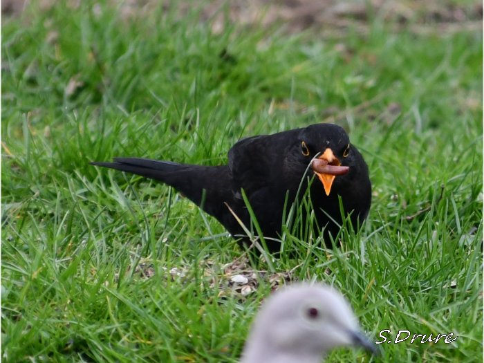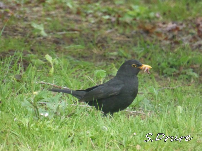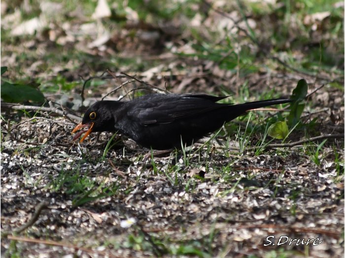 Alimentation : au sol, vers, insectes. Explore souvent les feuilles mortes à grand bruit.
