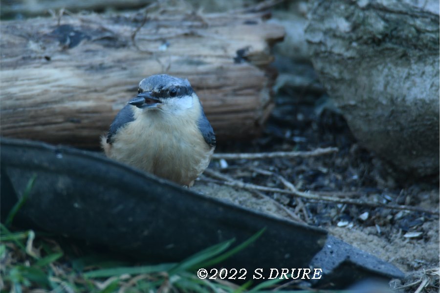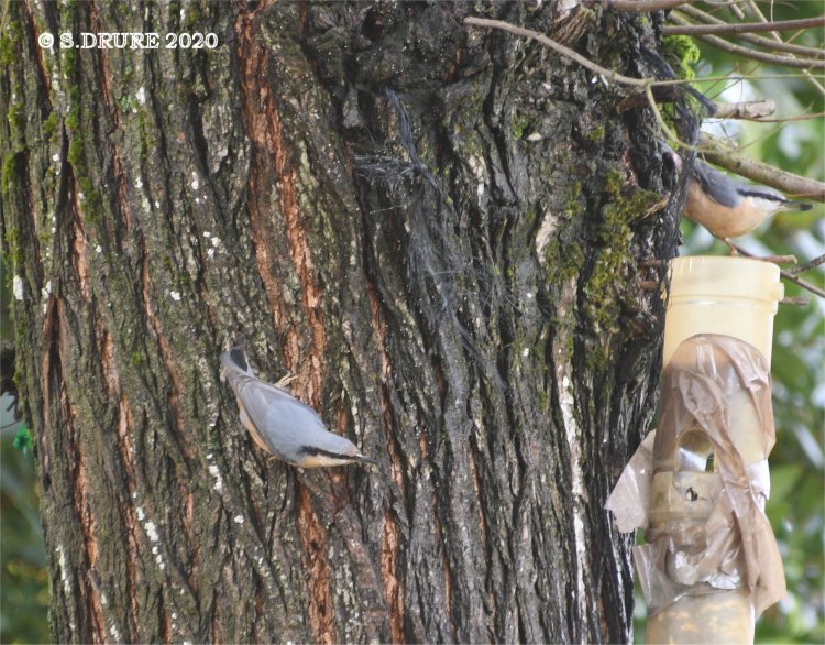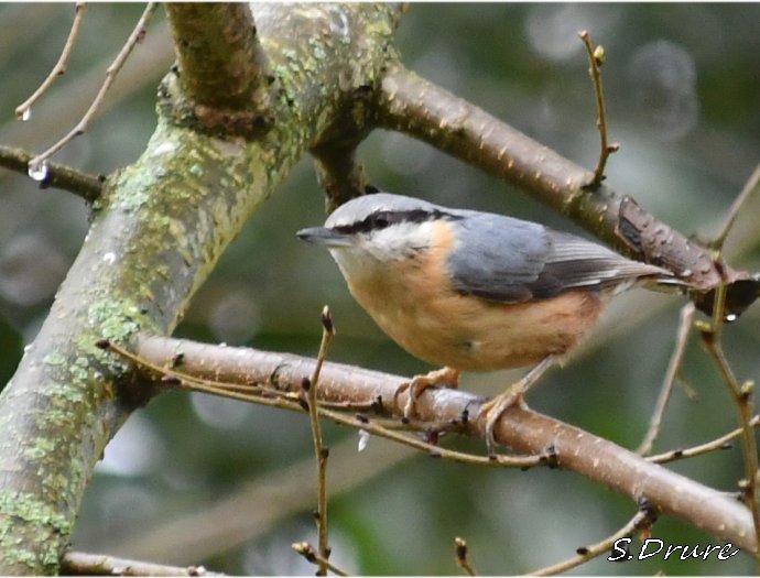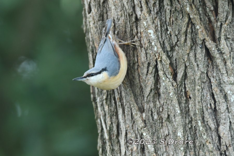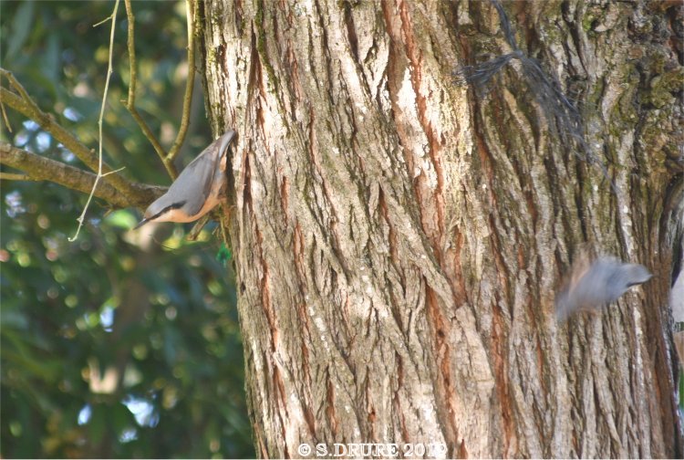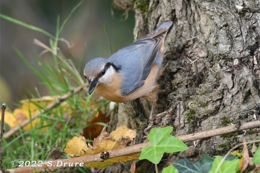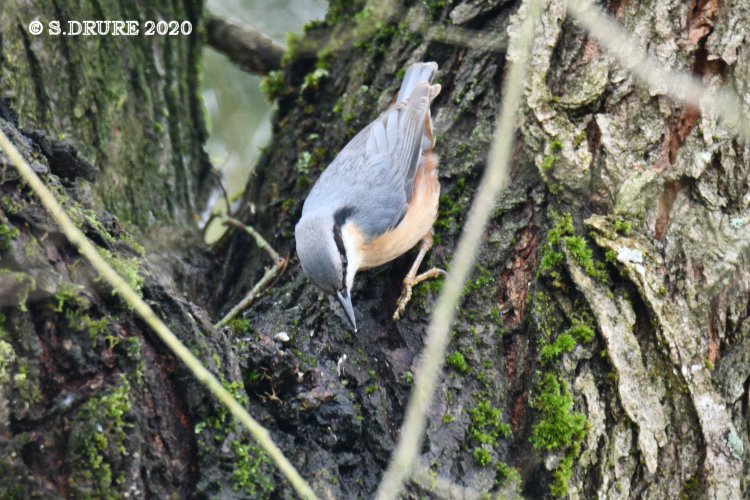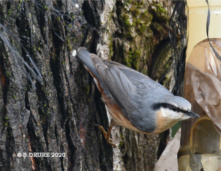 La sittelle torchepot est gris-bleu sur le dessus et fauve en dessous. Une bande noire barre ses yeux.