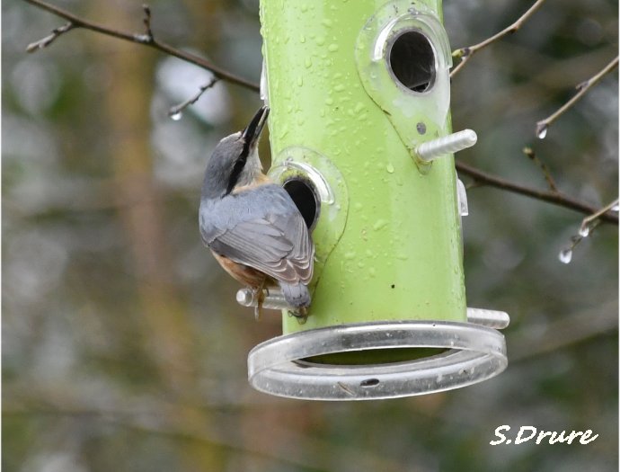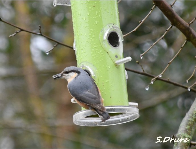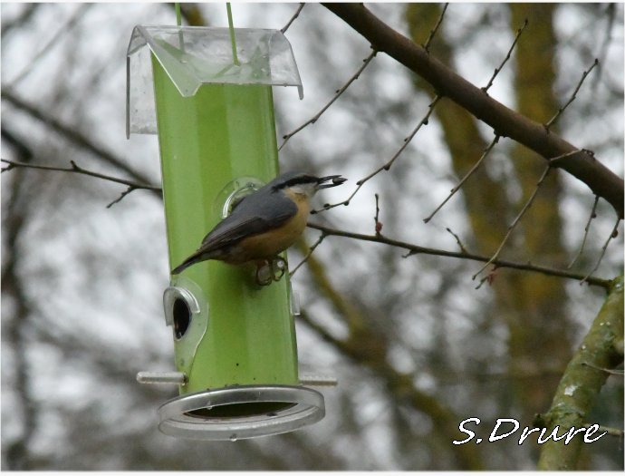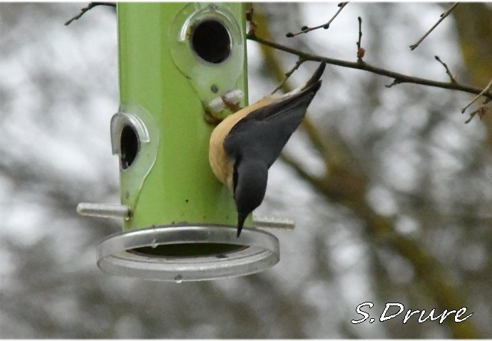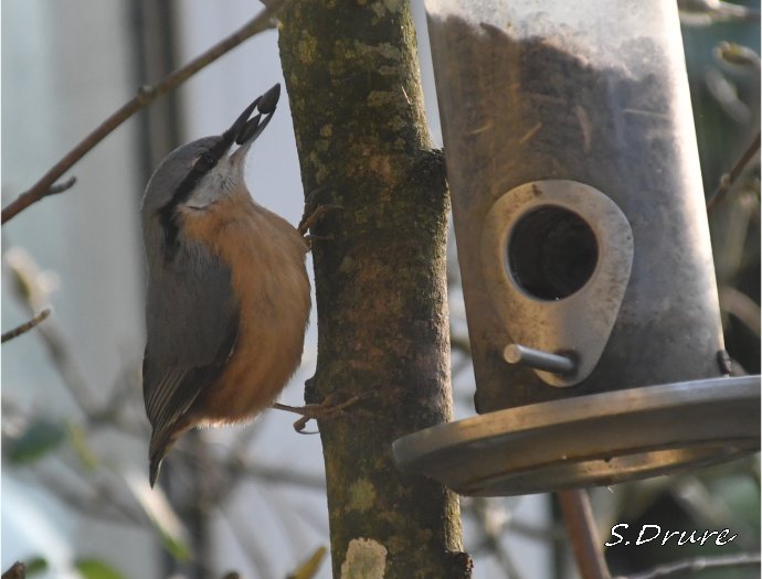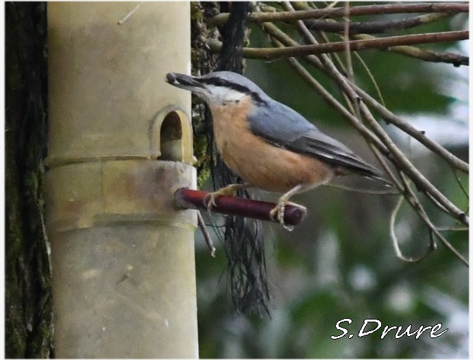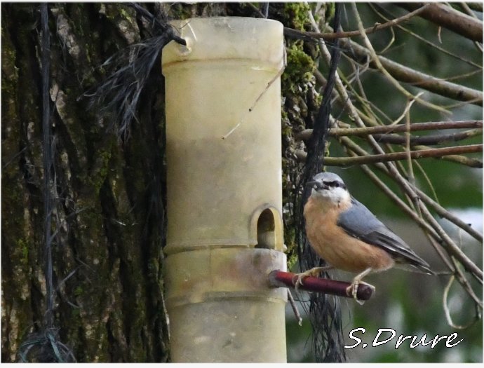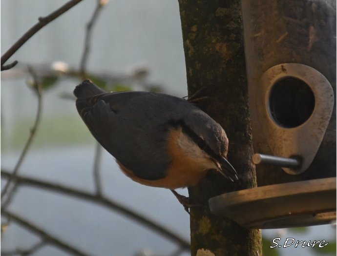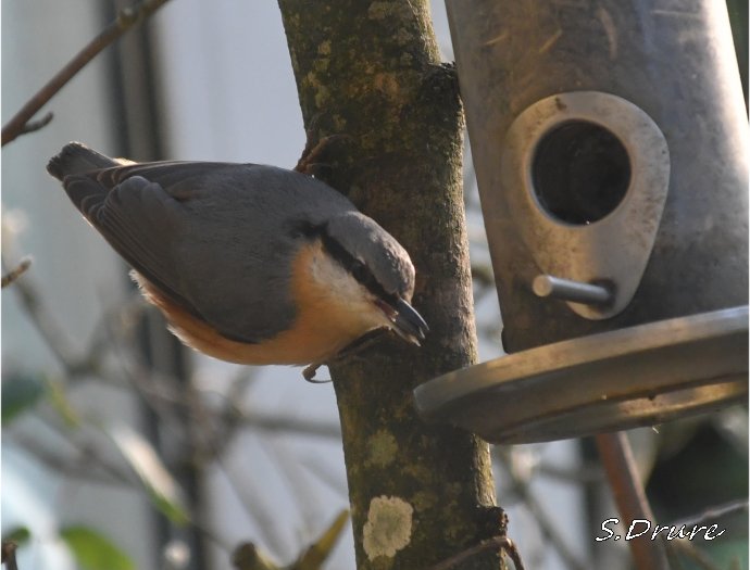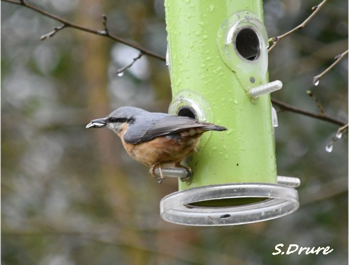 La sittelle torchepot est gris-bleu sur le dessus et fauve en dessous. Une bande noire barre ses yeux.